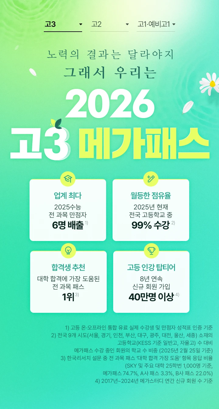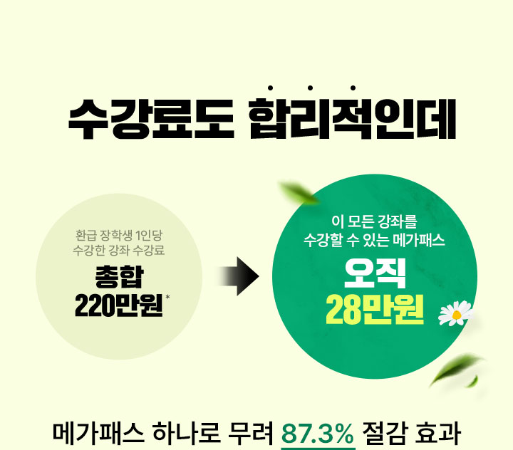 ※ 2025년 7월 1일 이후 메가패스 구매회원에게는 환급형 장학금 혜택이 제공되지 않습니다.