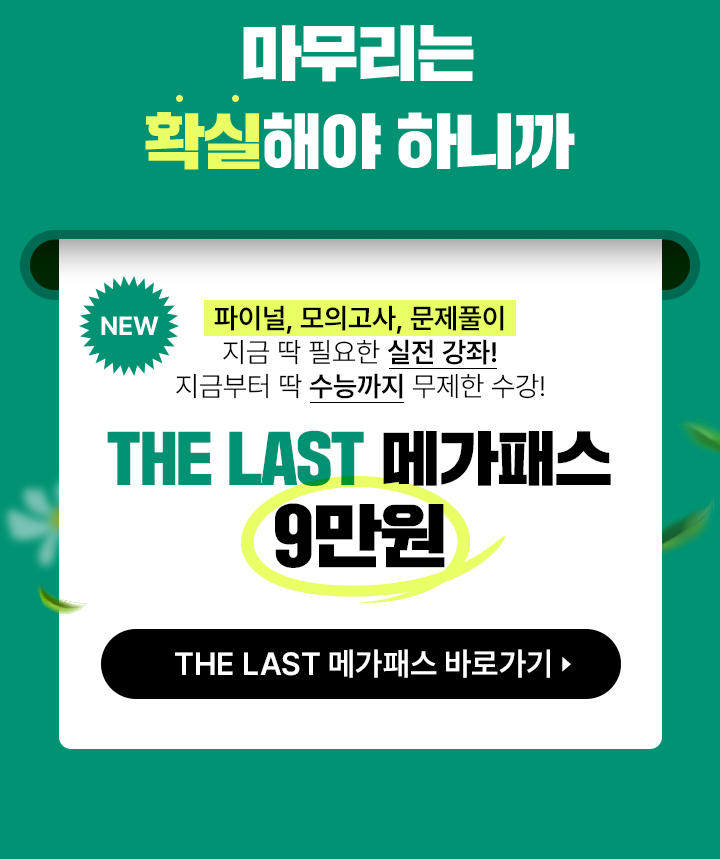 * 환급형 상품을 구매한 2026 메가패스 수강생에게 2026 수능 버전 정시 합격예측 서비스 20회 이용권이 무료로 지급됩니다. (수능 당일 지급 예정)