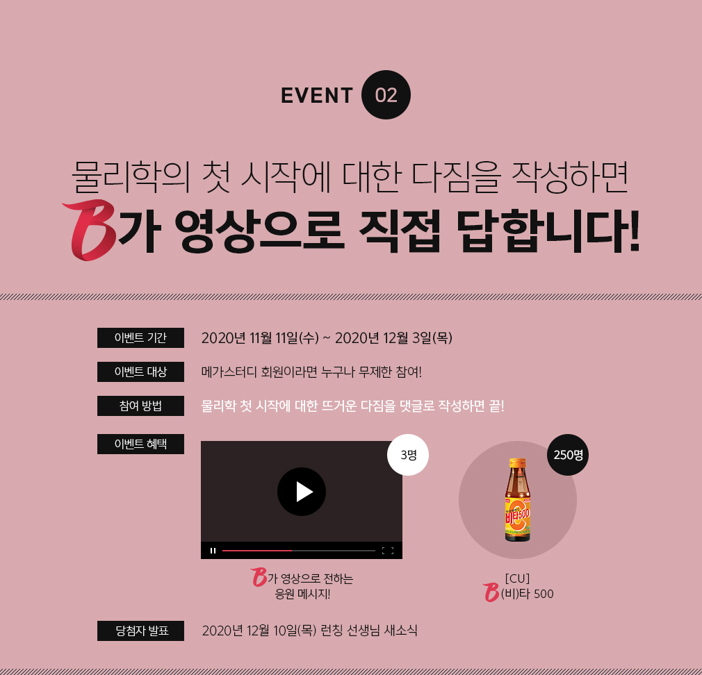 ¼ö´É ¹°¸®ÇÐÀÇ ÃÖ°í B¸¦ ¸¸³ª´Ù ¸Þ°¡½ºÅ͵𿡼 2020³â 12¿ù 1ÀÏ(È) BÀÇ ¼¼¹øÂ° ¸ð½ÀÀÌ °ø°³µË´Ï´Ù.