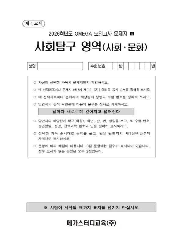 ¼Õ½¬¿î ¼ö´É »çȸ¡¤¹®È! [»çȸ¹®È] 2026 ¼ö´É´ëºñ OMEGA&LINK ¸ðÀǰí»ç - 13ȸ(3ȸÂ÷) °ÀÇ Æ¯Â¡¢º 01. ÇÊ¿äÇÑ ³»¿ë¸¸ ½ï½ï! ÃâÁ¦ Àǵµ¸¦ ºÐ¼®ÇÏ´Â ¼¶¼¼ÇÑ ÇØ¼³ °ÀÇ 02. ¹®Á¦ ¼Ó ÇÔÁ¤À» °É·¯³»°í Á¤´äÀ» ã´Â ÈûÀ» Ű¿ì´Â ºÐ¼® °ÀÇ 03. ²Ä²ÄÇÏ°Ô Â¤¾îÁÖ°í °³³äÀ» ä¿öÁÖ´Â Àü·« °ÀÇ