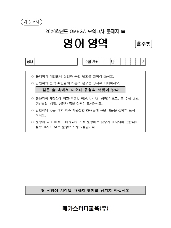 [¿µ¾î] 2026 ¼ö´É´ëºñ OMEGA&LINK ¸ðÀǰí»ç - 12ȸ(6ȸÂ÷)